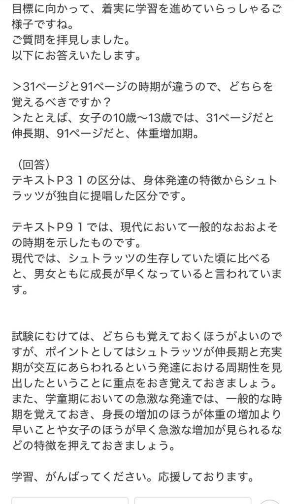 また、デジタルサポートではわからない問題があるとそのページ内から「この問題のここがわからない」とピンポイントで質問できて、早いときだと朝に質問して夕方には答えが返ってきていました。解説も丁寧で優しくて、私の質問に的確に答えてくれるから、AIとかではなく、直接人と話している感覚でした。